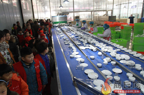 12月26日,天气晴朗,为丰富晚报小记者们的假日生活,拓宽小记者们的视野,增加孩子们的社会体验,来自商丘市前进小学、民主路第二小学、白云小学的30名晚报小记者来到了商丘市豫龙餐具消毒有限公司参观学习,小记者了解了餐具从入水除渣到全自动包装的整个过程。
